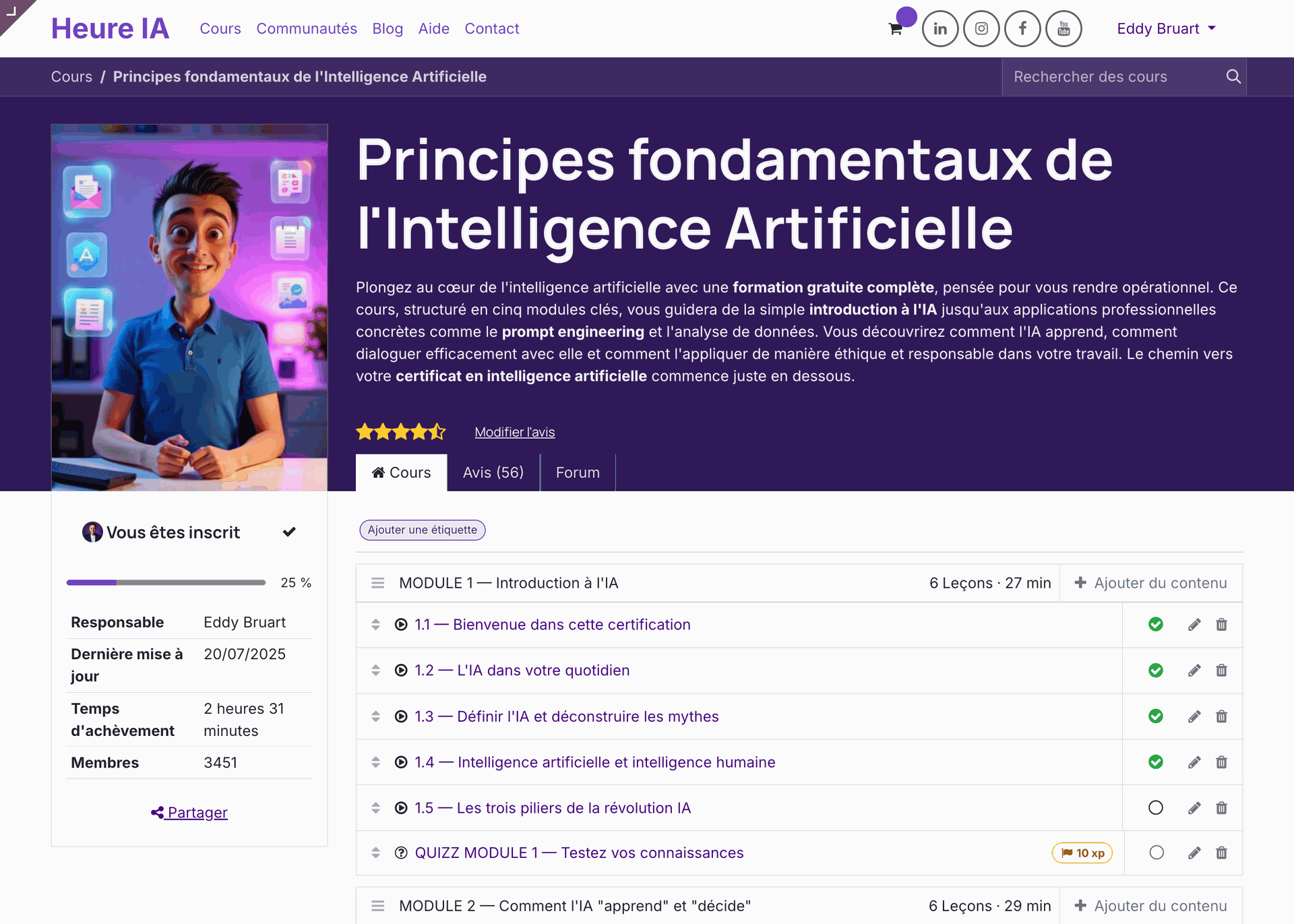 - Forum — peer support for the course and thematic communities.